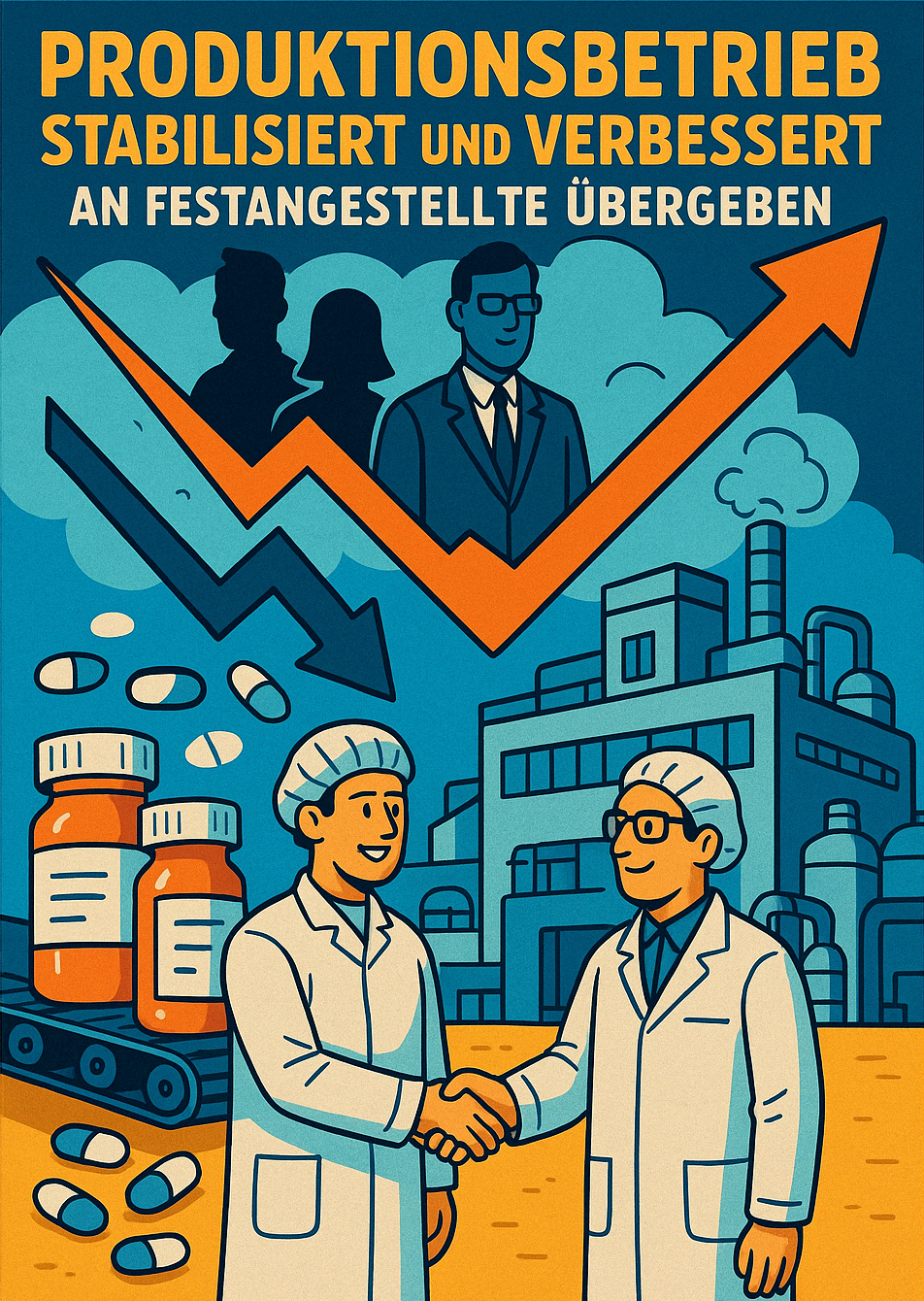Das Mandat umfasste die Werkleitung eines pharmazeutischen CMO-Betriebes der einen Monat zuvor durch seinen Hauptkunden aufgekauft wurde.